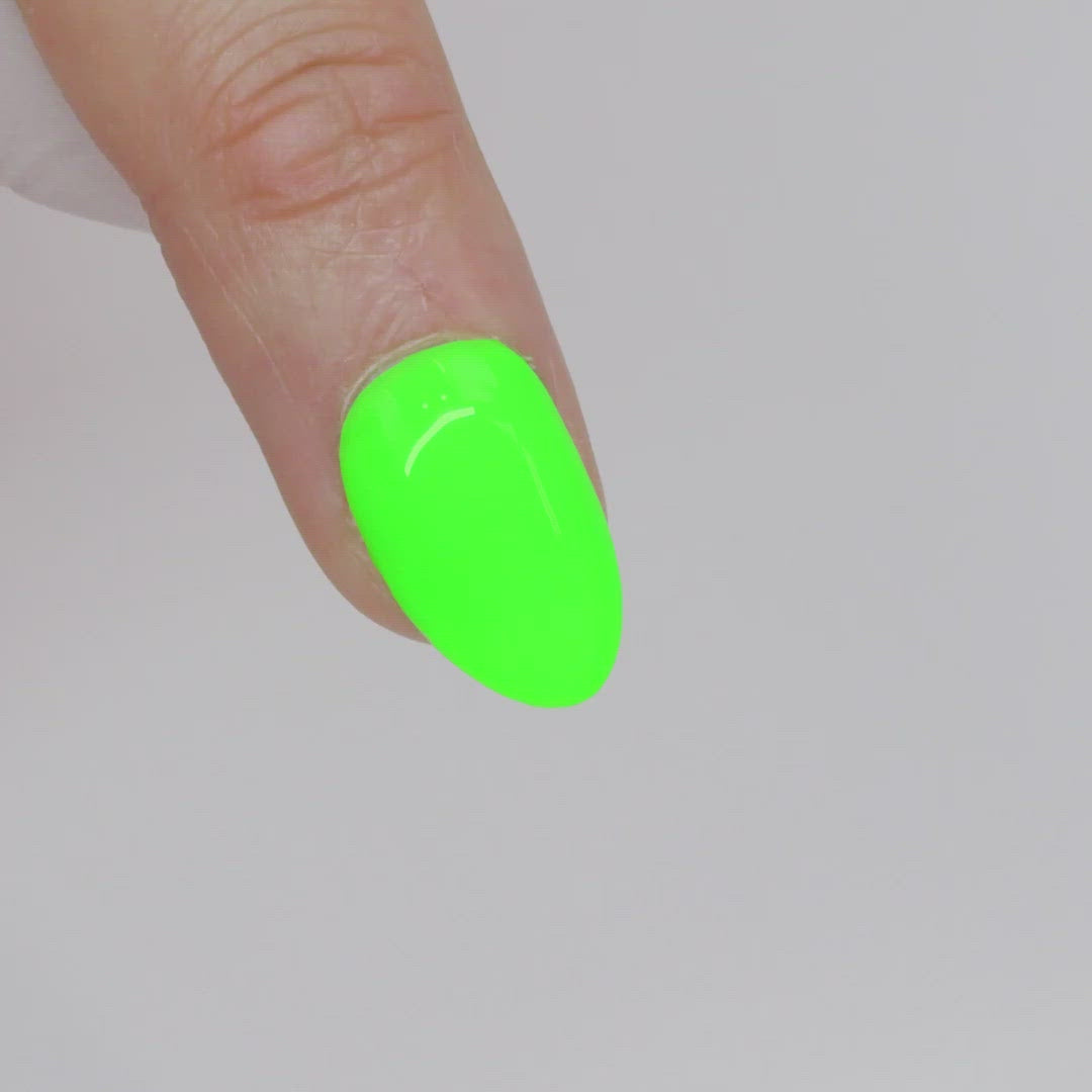 A bright, exciting neon green that is both light and happy. This color is not for the timid and adds a great accent to your nail art or outfit.