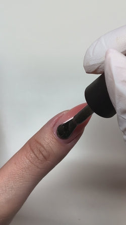 - Using the included application brush, apply P+ Gel Polish in a thin, even layer over the entire nail plate.